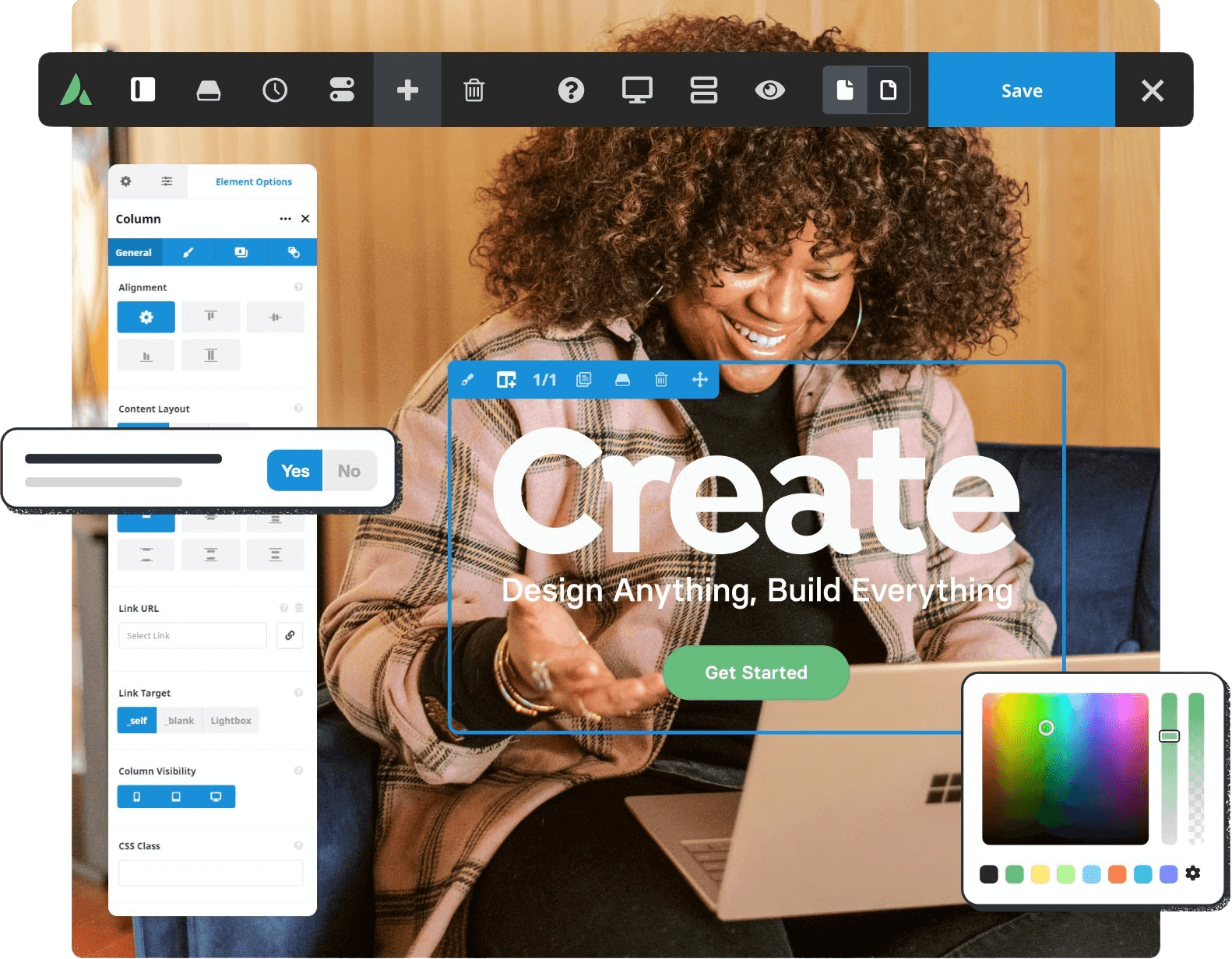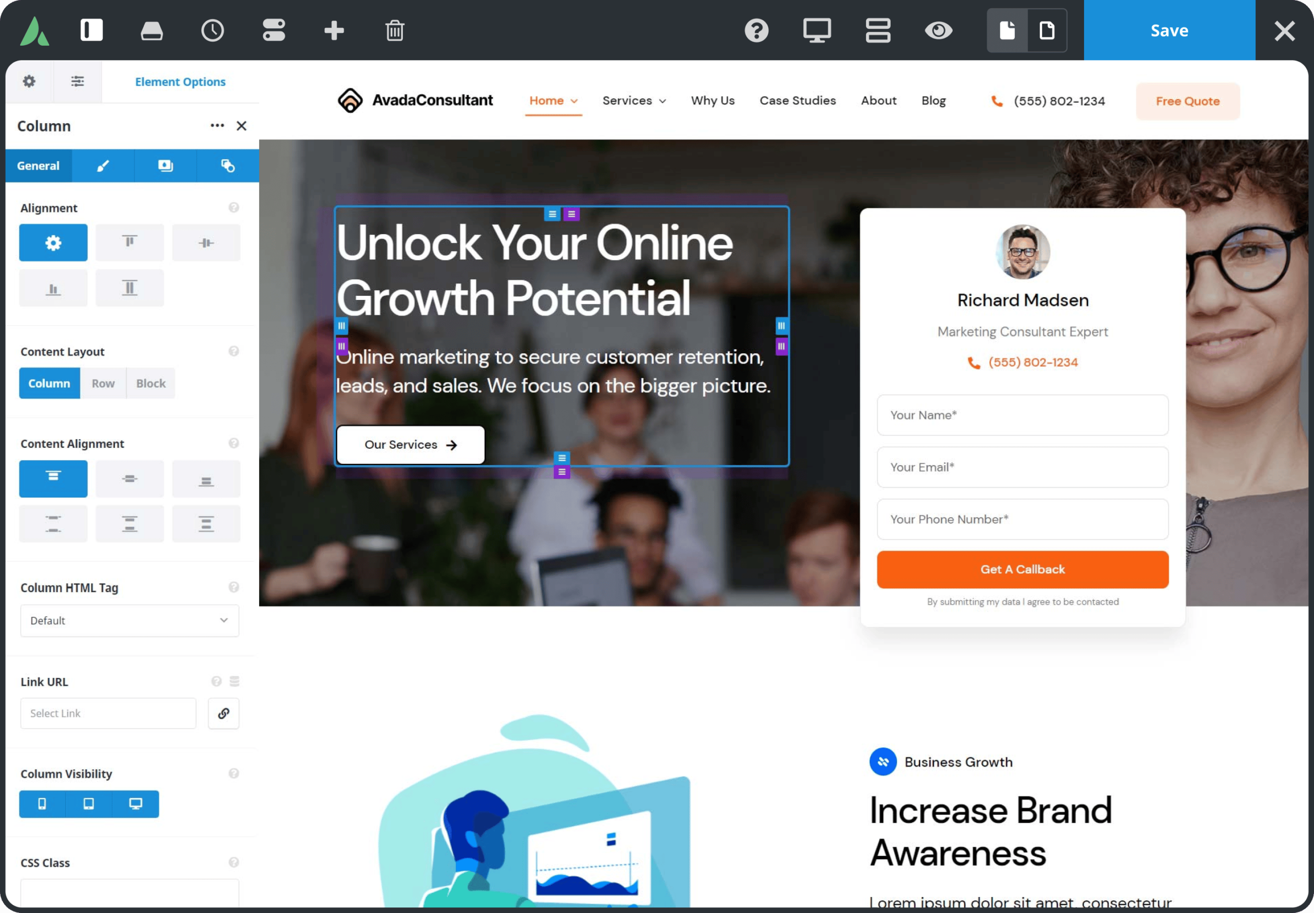 La interfaz de creación es tan visual y fácil como editar un documento o usar PowerPoint, gracias a la tecnología Avada Live, el mejor constructor web del mercado.